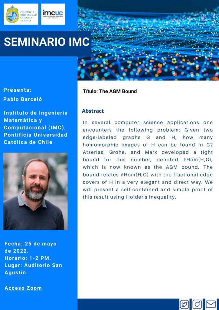 El Instituto de Ingeniería Matemática y Computacional (IMC) los saluda atentamente y los invita al seminario que se dictará la próxima semana.